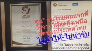 ผมนับถือน้ำใจตูนที่วิ่ง สมควรยกย่อง แต่เรื่องบันทึกไทยให้รางวัลตูนนั้น ไม่ถูกต้องตามมาตรฐานที่สมควร: