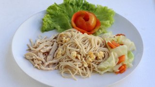 ทำเองก็ได้นะ :: "บะหมี่ยูนนาน" ผัดไข่ไก่ฉีก กับ ผักผัดโชยุ