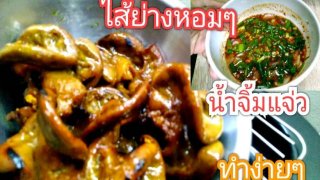 ใส้อ่อนย่าง ใส้อ่อนย่างง่ายๆ น้ำจิ้มแจ่ว