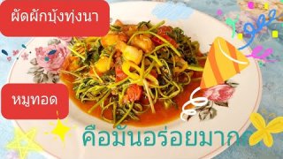 ผัดผักบุ้งนา สามชั้นทอด เมนูธรรมดาที่รสชาติไม่ธรรมดา : ครัวบ้านแม่