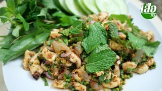 สูตรวิธีทําลาบปลาหมึก (คอปลาหมึก) เมนูนี้ทำกินได้ทำขายก็ได้ ใช้ได้ทั้งปีกและหนวดปลาหมึก