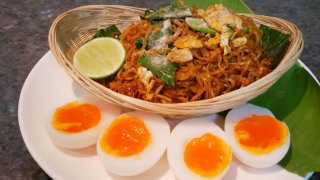 ผัดมาม่าเคียงคู่กับไข่ยางมะตูม