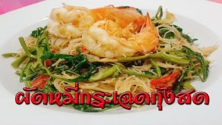 ผัดหมี่กระเฉดกุ้งสด