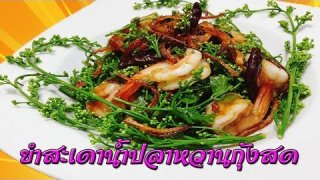 ยำสะเดาน้ำปลาหวานกุ้งสด