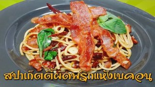 สปาเก็ตตี้ผัดพริกแห้งเบคอน