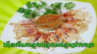 วิธีทำ เห็ดเข็มทองห่อเบค่อนย่างเนย