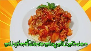 สปาเก็ตตี้ผัดซอสหมูสับไส้กรอก