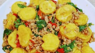 เมนูผัดกะเพราหมูเต้าหู้ทอด