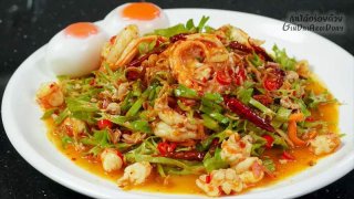 ยำถั่วพูกุ้งสด (พร้อมเคล็ดลับทำอย่างไรให้ถั่วไม่ดำ)