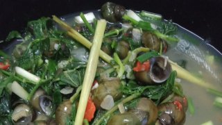อาหารอีสานแซ่บๆ เมนูอ๋อมหอยขม /แกงเห็ดฟางใส่ไข่มดแดงผักหวานป่า