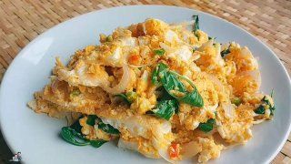 ไข่ขยี้พริกน้ำปลาใบโหระพา
