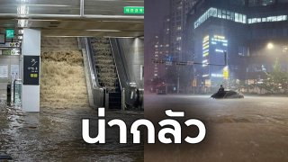 น่ากลัวมาก เคยเห็นแต่ในหนัง พายุฝนถล่มกรุงโซล น้ำท่วมสูงจมรถยนต์-ทะลักลงรถไฟฟ้าใต้ดิน