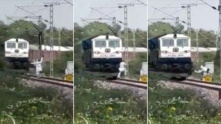 นาทีระทึก!! หนุ่มโบกมือให้รถไฟหยุด ขอข้ามทาง สุดท้ายไม่รอด