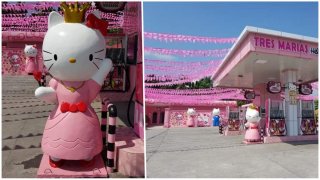 โลกนี้เป็นสีชมพู!! ปั๊มน้ำมันคิตตี้ สีชมพูหวานแหวว ตกแต่งคิตตี้ทั้งปั๊ม