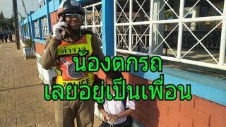 ชื่นชมตำรวจจราจร!! อยู่เป็นเพื่อนเด็ก 7 ขวบ ตกรถนักเรียน รอจนเย็นส่งกลับบ้านปลอดภัย