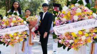 เด่นสุดในงาน เมื่อเพื่อนสุดฮา นำช่อดอกไม้ไปมอบให้บัณฑิตใหม่
