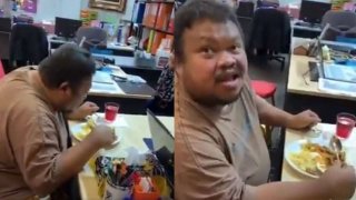 ชายเร่ร่อนยิ้มอย่างสุขใจ ได้ข้าวตกถึงท้องหลังไม่ได้กินอะไรมา 4 วัน