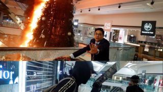 ชาวเน็ตเตือนคนไทย!! ม็อบฮ่องกงเข้าทำลายค่อนข้างหนัก ทุบกระจกราวกั้นแต่ละชั้น เผาต้นคริสต์มาสในห้าง