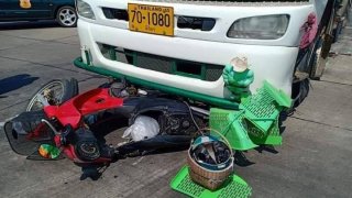 หญิงสาวขับขี่รถ จยย. ตัดหน้ารถบรรทุกพ่วง 22 ล้อ ก่อนถูกเหยียบทับร่าง ได้รับบาดเจ็บสาหัส