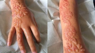 เด็กหญิงวัย 7 ขวบเจ็บแผลจากการทำรอยสักชั่วคราว(เฮนน่า)บนผิวเธอ ซึ่งเธอแพ้อย่างรุ่นแรง