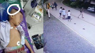 พุ่งมากจากไหน ชนเปรี้ยงเด็กป.2จนกระเด็นติดรถไปด้วย ร้องเท้านักเรียนทั้งสองข้างหลุดออกมา เด็กคนที่โดนชน มีอาการเกร็งมือ
