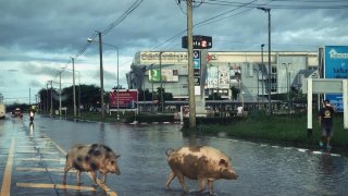 ชาวเน็ตโพสต์ อุบลฯ ท่วมหนัก น้องมากับน้ำ หมูใครหาย