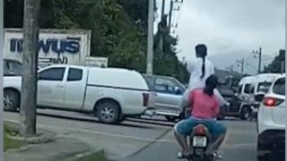 เตือนใจ !!อันตราย!! ผู้ปกครองขับ จักรยานยนต์ไม่ใส่หมวกกันน๊อก อีกทั้งยังให้ลูกยืนบนเบาะ