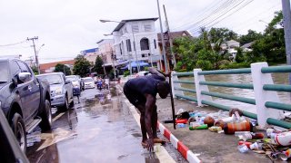 ชาวเน็ตชื่นชม!! ผิวพี่มืด แต่ใจพี่สว่างมาก!! ชาวต่างชาติ เดินเก็บขยะ เพื่อช่วยเปิดทางน้ำท่วมให้ไหลที่ร้อยเอ็ด