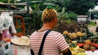 พ่อค้าสับปะรดไอเดียเจ๋ง ลูกค้าเห็นถึงกับสะดุดตาต้องแวะซื้อกันเป็นแถว