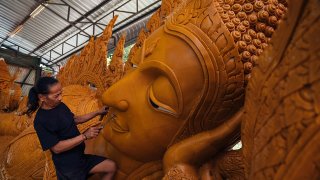 สวยงามประณีต!! เผยภาพ วิธีทำต้นเทียนวัดชัยมงคล จ.อุบลฯ อลังการประณีตสุดๆ