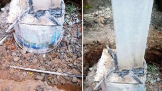 ชาวเน็ตสงสัย เมื่อช่างก่อสร้างหลังคาโรงรถ ใช้ถังพลาสติกรองรับน้ำหนักเสาหลังคาโรงรถ มันได้ด้วยหรือ??