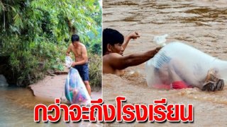 ชีวิตต้องสู้!! ดูไว้นะเด็กๆ บางคนกว่าจะไปถึงโรงเรียนต้องลำบากขนาดไหน
