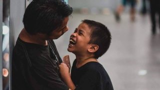 แห่แชร์!! ภาพสองพ่อลูกคุยหยอกล้อกันบนBTS ถึงแม้ไม่มีเงินทองมากมาย ก็มีความสุขได้