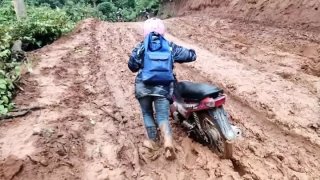 ทุกคนเป็นกำลังใจให้ ครูอมก๋อย เข็นจยย.ฝ่าโคลน ไปสอนหนังสือ