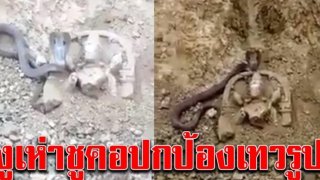รถแบคโฮขุดดิน เจอเทวรูปปริศนา งูเห่าเลื้อยมาชูคอแผ่แม่เบี้ยปกป้อง