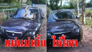 หนุ่มโพสต์ งูจงอางตัวใหญ่ เลื้อยขึ้นบนรถ แผ่แม่เบี้ย เชื่อมาให้โชค