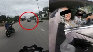 หนุ่มบิ๊กไบค์หัวร้อน เจอมนุษย์ป้าขับปาดหน้า เกือบซวย (คลิป)