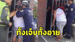 จำอีกนาน คุณป้า ยื่นหน้าแอบฟังเรื่องชาวบ้าน หัวติดประตูเหล็กนานกว่า 5 ชั่วโมง