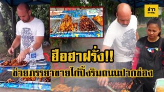 ฮือฮา ฝรั่งชาวเยอรมันช่วยภรรยาชาวไทยขายไก่ปิ้งริมถนน ที่ปากช่อง