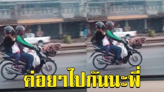 ไม่หรูแต่ดูมีความสุข สองสามี-ภรรยา ขับมอไซต์แบกของพะรุงพะรังกลับจากบ้านช่วงหยุดสงกรานต์