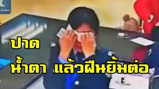 ตำรวจอดทน!! ตำรวจหญิงจีนหยิบทิชชู่ปาดน้ำตา ก่อนกลับไปฝืนยิ้มต่ออย่างรวดเร็ว