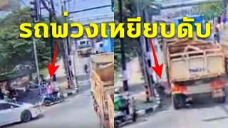 สาวขับมอไซด์ ออกจากทางแยกไม่มอง รถพ่วงเหยียบดับ