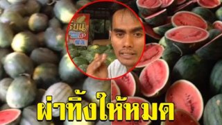 ผมขายให้ลูกค้าไม่ได้ พ่อค้าสุดช้ำ ลงทุนซื้อแตงโมเกือบ 40,000 ของมาถึงลมแทบจับ ไล่ผ่าทุกลูก ทิ้งให้วัวกินทันที