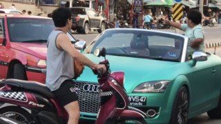 ที่นี่เมืองไทยนะไอ้หนู หนุ่มน้อยนั่งเฝ้ารถ ชี้นิ้วตระโกนลั่น ห้ามใครเข้าใกล้รถของพ่อ ทั้งที่จอดขวางทาง