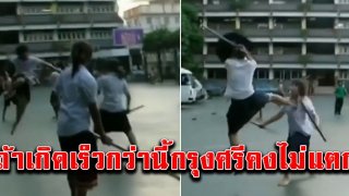 ถ้าเกิดเร็วกว่านี้ กรุงศรีคงไม่แตก เผยคลิป นร.หญิง เรียนวิชากระบี่กระบองแบบดุดันสุดๆ จาพนมยังยอมแพ้