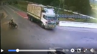 รถใหญ่+รถเล็กอีก!! ใครผิด?? นาทีสองนักเรียนหญิงชนล้อรถสิบล้อ ... !!!