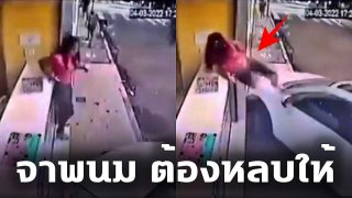นาทีเฉียด!! สาวนักศึกษา โดนรถพุ่งชนเอาตัวรอดได้ มิลล์เชคยังอยู่ในมือไม่หก