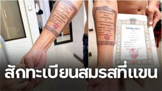 อิจฉาตาร้อน!! สามีดีเด่น ลงทุนสักทะเบียนสมรสที่แขน ยอมทนเจ็บกว่า 6 ชั่วโมง