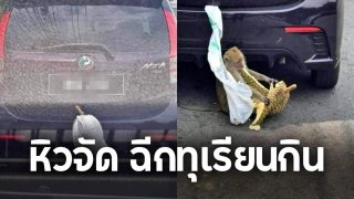 ชาวเน็ตงง!! ลิงฉกกินทุเรียนกิน ทั้งฉีกเปลือกเองด้วยมือ เก่งกว่าคนเสียอีก