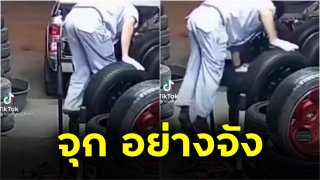 ไม่น่าเลย! ถึงกับจุก!! หนุ่มช่างยนต์ กระโดดถอยหลัง ก้นกระแทกเหล็ก อย่างจัง